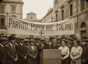 Il quadro storico in cui nasce il PPI era tutt’altro che rassicurante: l’Italia usciva dalla guerra profondamente segnata, mentre l’inflazione galoppante, la disoccupazione e la rabbia dei reduci si trasformavano in movimenti di piazza e scioperi che avrebbero animato il cosiddetto “Biennio Rosso”. I partiti tradizionali, ormai logorati, apparivano incapaci di offrire risposte. In questo vuoto, Sturzo intuì che era il momento di un nuovo soggetto politico, capace di raccogliere le istanze popolari e di proporre soluzioni all’altezza delle sfide sociali ed economiche.
